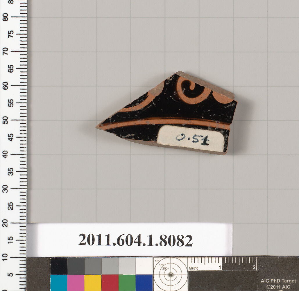 - Title:Terracotta fragment of a kylix (drinking cup)