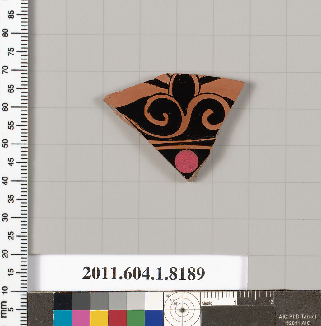 - Title:Terracotta fragment of a kylix (drinking cup)