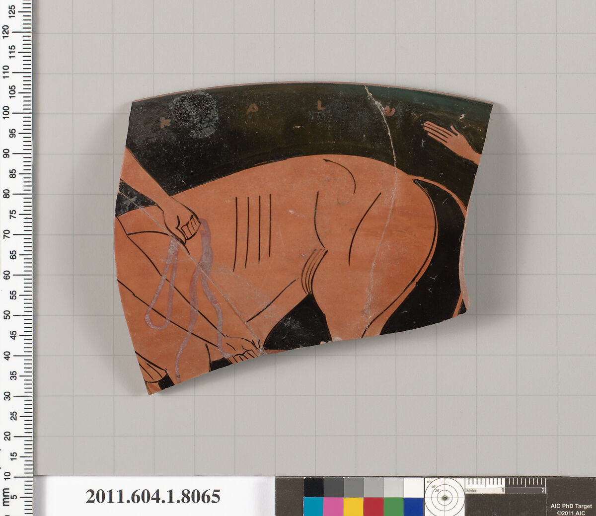 - Title:Terracotta rim fragment of a kylix (drinking cup)