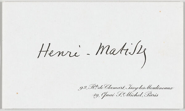In 1904 Matisse began to hyphenate his name to avoid confusion with the marine painter Auguste Matisse. Following the latter's death in 1931, he dropped the hyphen, see: Schang 1983, p. 65.