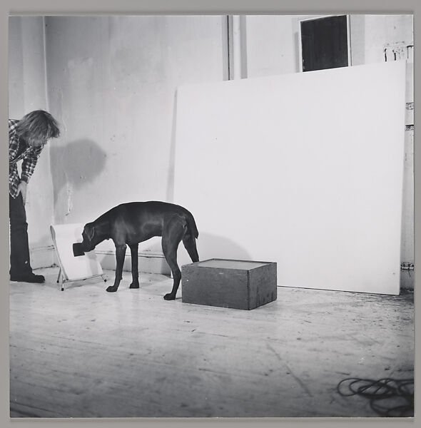Together with friends such as John Baldessari and Ed Ruscha, Wegman was an important figure in the witty and incisive variant of Conceptual Art practiced on the West Coast in the early 1970s--simultaneously fulfilling and lampooning the orthodoxies of "post-studio" art. Often Wegman's collaborator in videotapes and photo-works was his Weimaraner Man Ray, who the artist hilariously put through his paces in a series of deadpan learning experiments. In this seven-part piece, the viewer's own learning curve is tested against that of Man Ray: exploring every permutation of a "key" where geometric shapes correspond to positions before, on, or behind a wooden box.