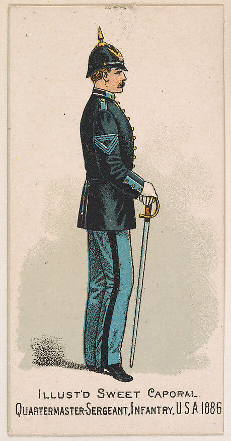 - Title:Quartermaster-Sargeant, Infantry, United States Army, 1886, from the Military Series (N224) issued by Kinney Tobacco Company to promote Sweet Caporal Cigarettes