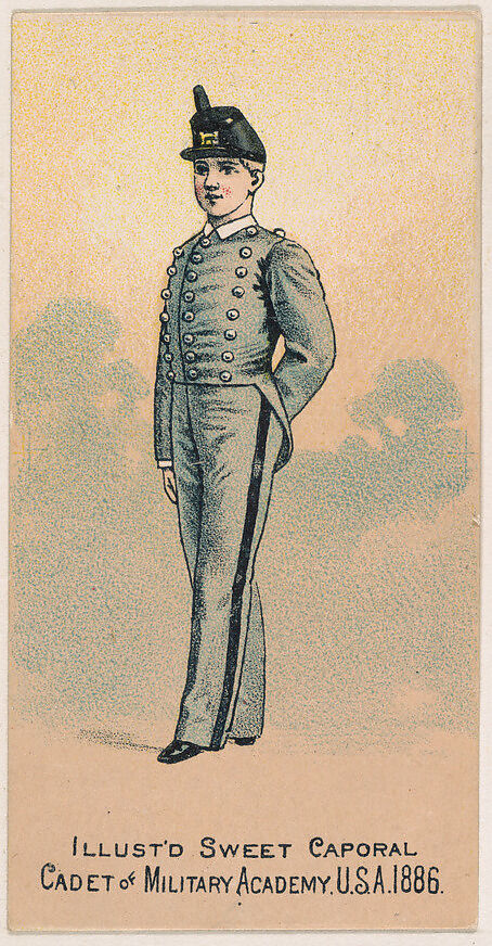 - Title:Cadet of Military Academy, United States Army, 1886, from the Military Series (N224) issued by Kinney Tobacco Company to promote Sweet Caporal Cigarettes