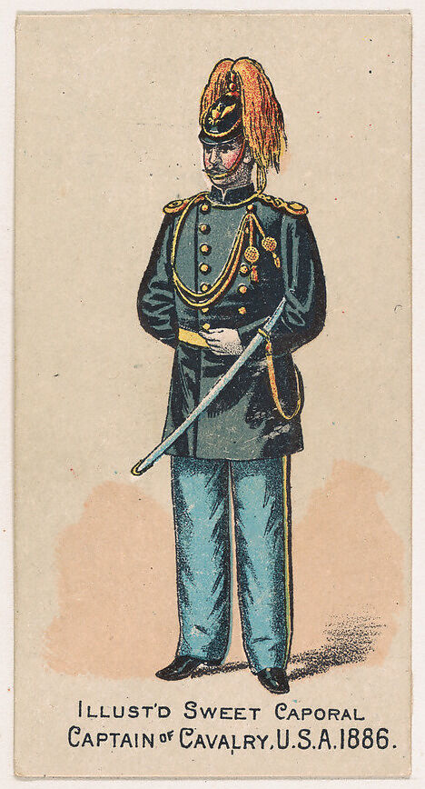 - Title:Captain of Cavalry, United States Army, 1886, from the Military Series (N224) issued by Kinney Tobacco Company to promote Sweet Caporal Cigarettes