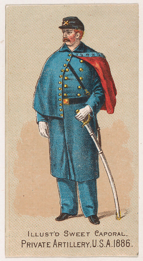 - Title:Private, Artillery, United States Army, 1886, from the Military Series (N224) issued by Kinney Tobacco Company to promote Sweet Caporal Cigarettes
