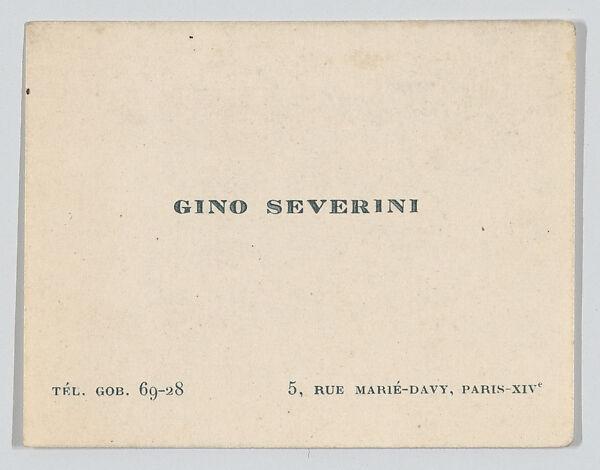 F. C. Schang donated 64 artists’ calling cards to The Met between 1977 and 1989. The calling cards are housed in an album that also includes Schang’s collection of stamps and other related ephemera. Calling cards derived from a custom, originating in England, in which messages were inscribed on the backs of playing cards. Cards made for the express purpose of sharing hand-written messages were manufactured beginning in the eighteenth century; by the early-nineteenth century, calling cards had become a popular means for sending well wishes, holiday greetings, condolences, and messages of courtship.