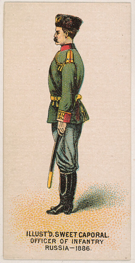 - Title:Officer of Infantry, Russia, 1886, from the Military Series (N224) issued by Kinney Tobacco Company to promote Sweet Caporal Cigarettes