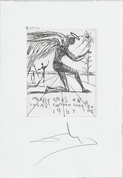 - Title: A Christmas card to the Lucas family, a kneeling angel and two other figures