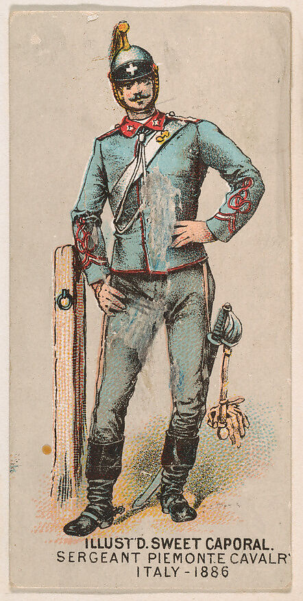 - Title:Sergeant Piemonte Cavalry, Italy, 1886, from the Military Series (N224) issued by Kinney Tobacco Company to promote Sweet Caporal Cigarettes