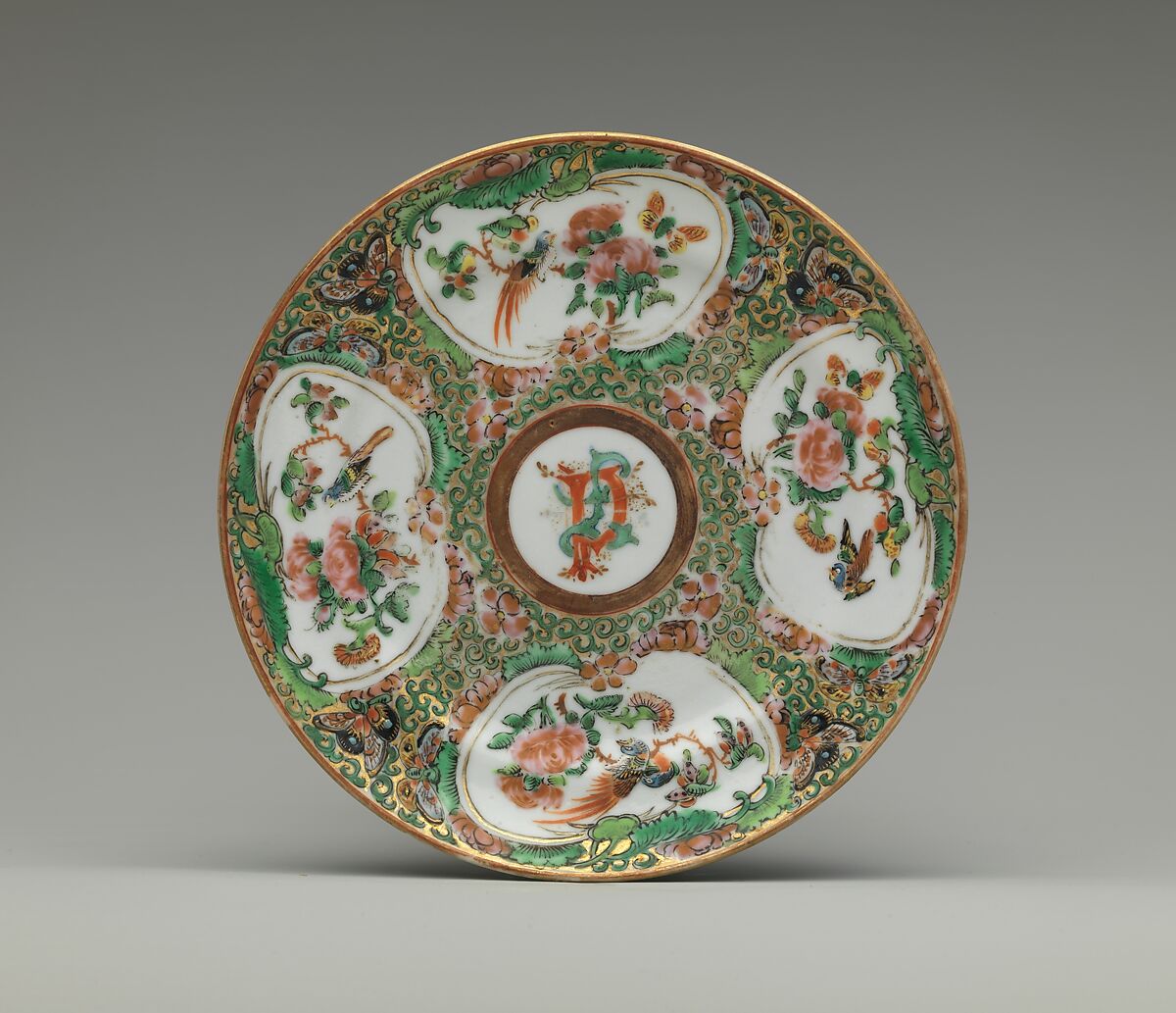 A Providence, Rhode Island merchant, Daniel Paine, ordered this dinner service for his wife, Louisa Paine, in the early nineteenth century. Her initials decorate the cups, saucers, dishes, plates, platters and tureens that compose the service.