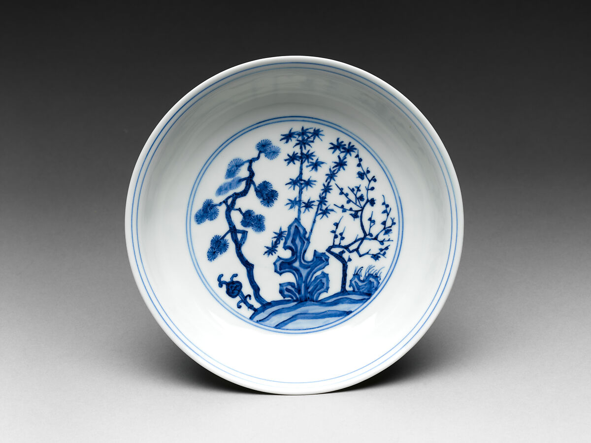 Plum blossoms, which are among the first plants to flower in the early spring, are often associated with the evergreen pine and bamboo and are known as the Three Friends of Winter, a motif symbolic of Confucian virtues such as endurance, modesty, and fortitude. The shape of the dish and the style of decoration are characteristics often associated with works made for the court in the fifteenth and sixteenth centuries.