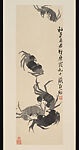 Crabs became an important subject in Qi Baishi's painting after he moved into a new studio in 1913 and crabs frequented his backyard. He once observed, "When a crab moves, its legs rise and fall in strict order despite their great number. This is something crab painters in the world do not know." This work represents his mature style, when naturalism and abstraction found a new balance. The subtle gradation of the ink suggests the undulation of the shell's surface. The eyes have become two short slanting lines. The claws, as circular splotches of ink with two simple converging lines, are reduced to geometric abstraction. During the last forty years of his life Qi lived in Beijing and befriended people of radically different persuasions. His passive tolerance of things of which he might not approve shows in his sarcastic inscription to this painting, which reads: "I just fold my arms and watch you gentlemen go." The Chinese term for the sideways movement of crabs, hengxing, is also a metaphor for impudent behavior. Qi often humorously compared crabs to presumptuous people. Here, he states that he will simply stand aside and let these creatures have their way.