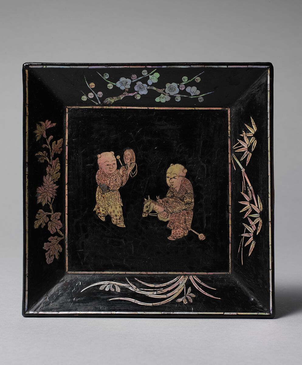 - Medium: Black lacquer inlaid with mother-of-pearl