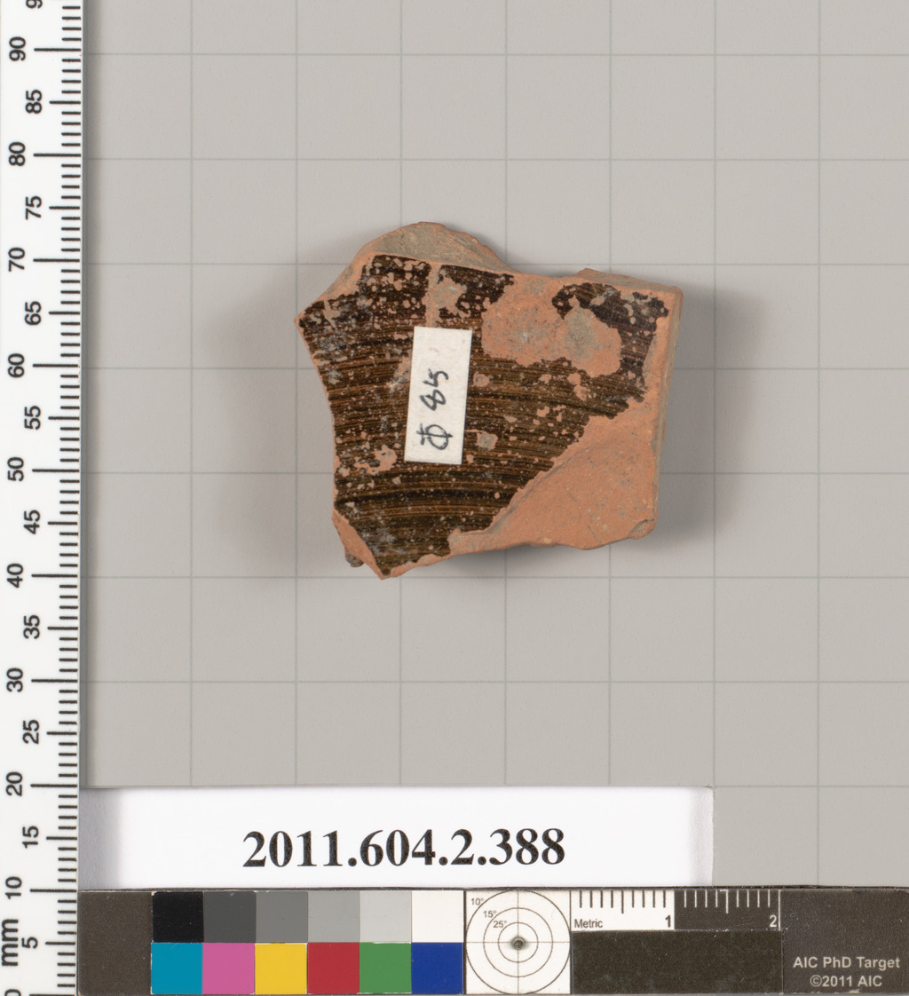 Terracotta fragment of a column-krater (bowl for mixing wine and water), Terracotta, Greek, Attic
