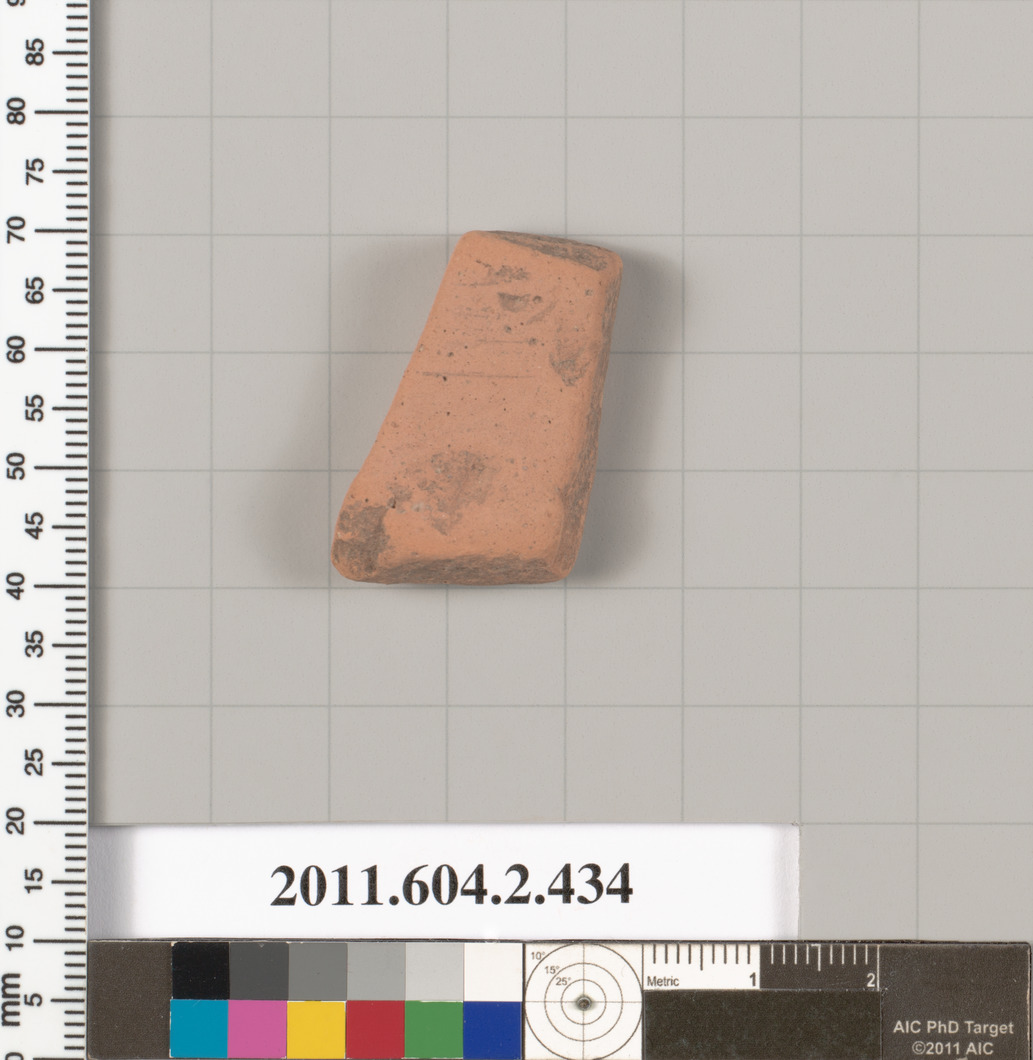 At the shoulder, band of tongues; below, part of the head and right ear of a youth to right; surface is abraded