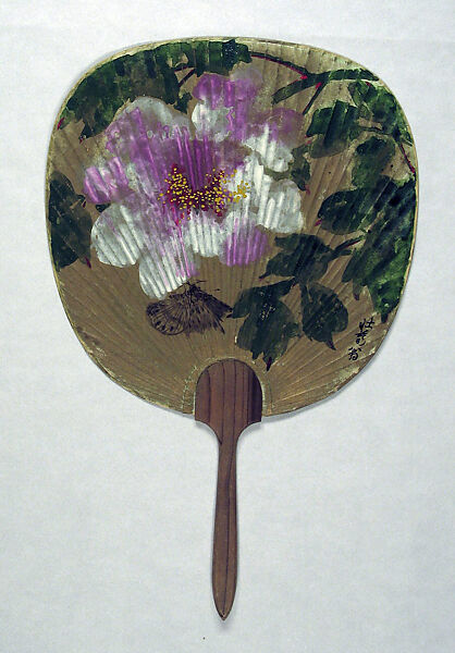 - Medium: Round fan; ink and color on paper with wood handle