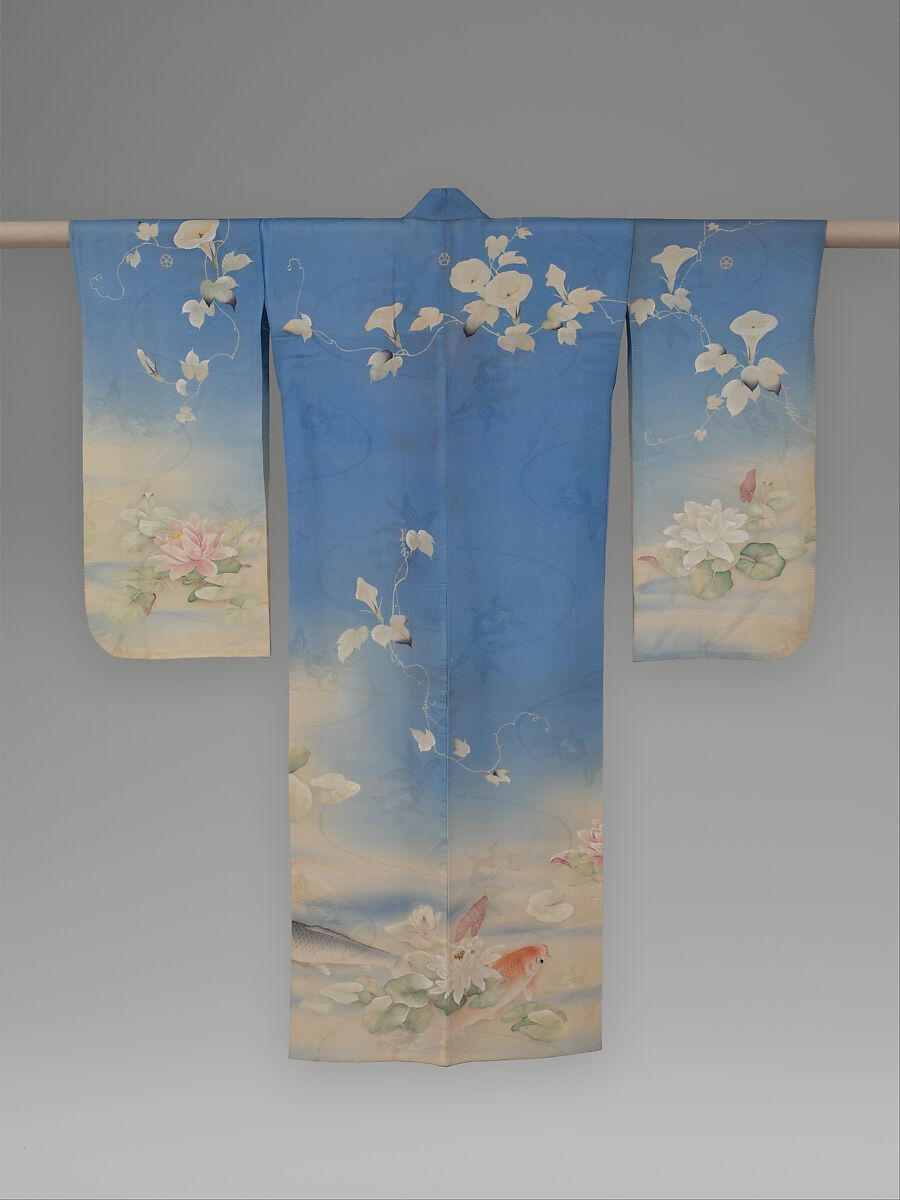 - Title: Unlined Summer Kimono (Hito-e) with Carp, Water Lilies, and Morning Glories