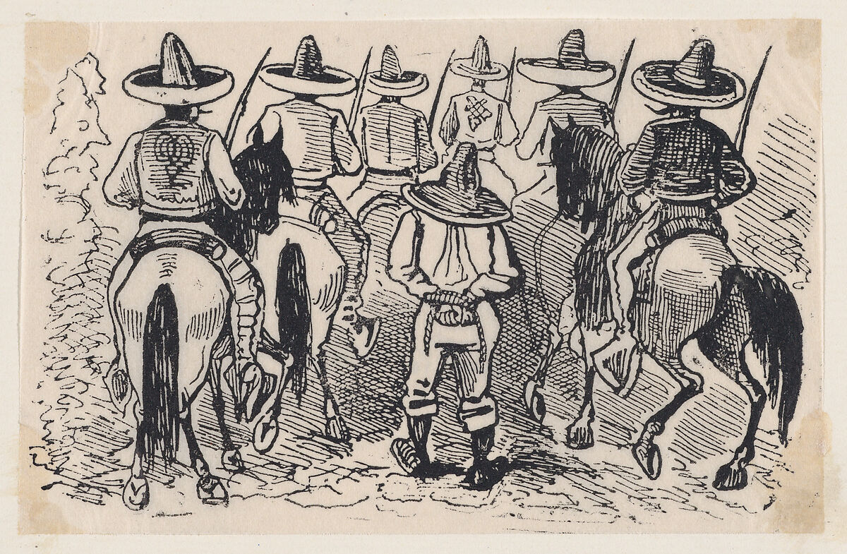 - Title: A group of Zapata followers on horseback from a broadside entitled 'Most wonderful miracle by the intercession of Our Most Blessed Lady of Perpetual Help worshipped in Cholula'