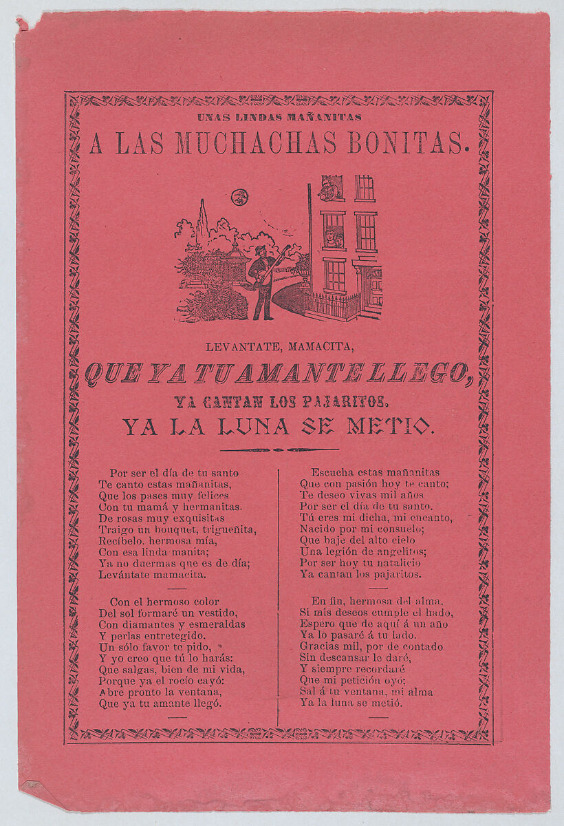 - Title: Broadsheet with a ballad about a man who stands outside his lover's window and sings to her