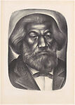 White portrayed the celebrated abolitionist and civil rights activist Frederick Douglass repeatedly throughout his career as part of his ambition to produce inspiring images of African American historical figures. During his lifetime, Douglass, for his part, recognized the importance of recording and circulating his own image in the advancement of his cause and strategically employed photography for this purpose, becoming the most photographed American of the nineteenth century. Prior to producing this print, White traveled to Mexico with his wife, the artist Elizabeth Catlett, to study with muralist David Alfaro Siqueiros at the Taller de Gráfica Popular. This lithograph adopts the monumental scale of a mural to present a closely cropped portrait of Douglass as a dignified elder statesman.