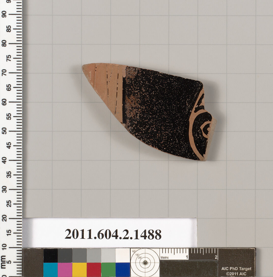 - Title:Terracotta fragment of a skyphos (deep drinking cup)
