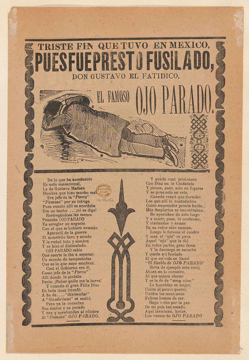 - Artist:José Guadalupe Posada (Mexican, Aguascalientes 1852–1913 Mexico City)