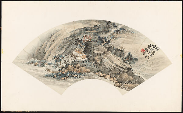 - Medium: Framed folding fan mounted as an album leaf; ink and color on paper