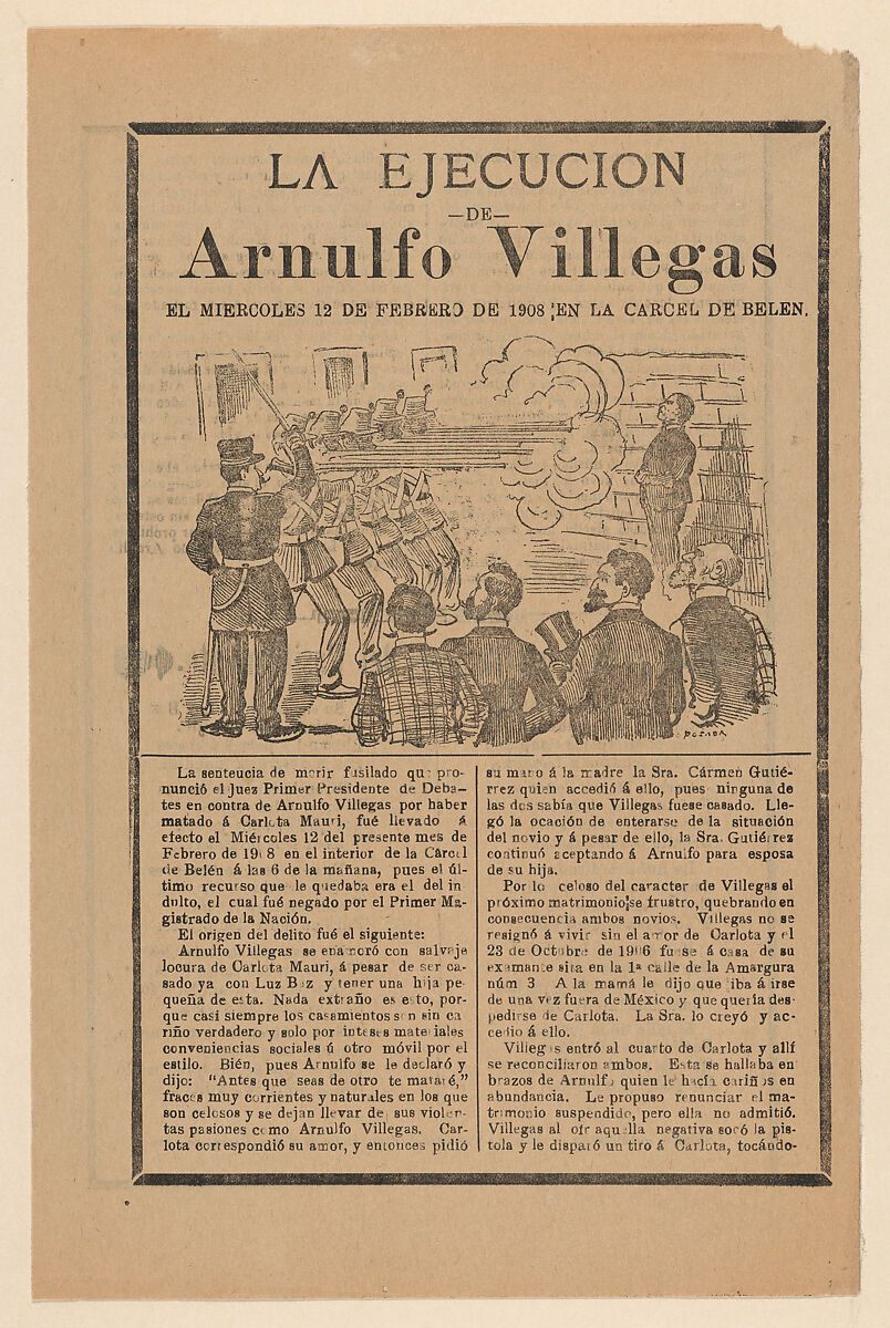 - Title: Broadsheet relating to the execution of Arnulfo Villegas in the Belen prison on 12 February 1908
