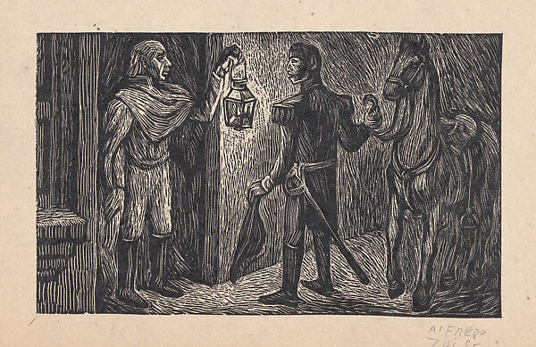 - Title:Miguel Hidalgo holding a lantern and speaking with a military official, illustration for 'Hidalgo'