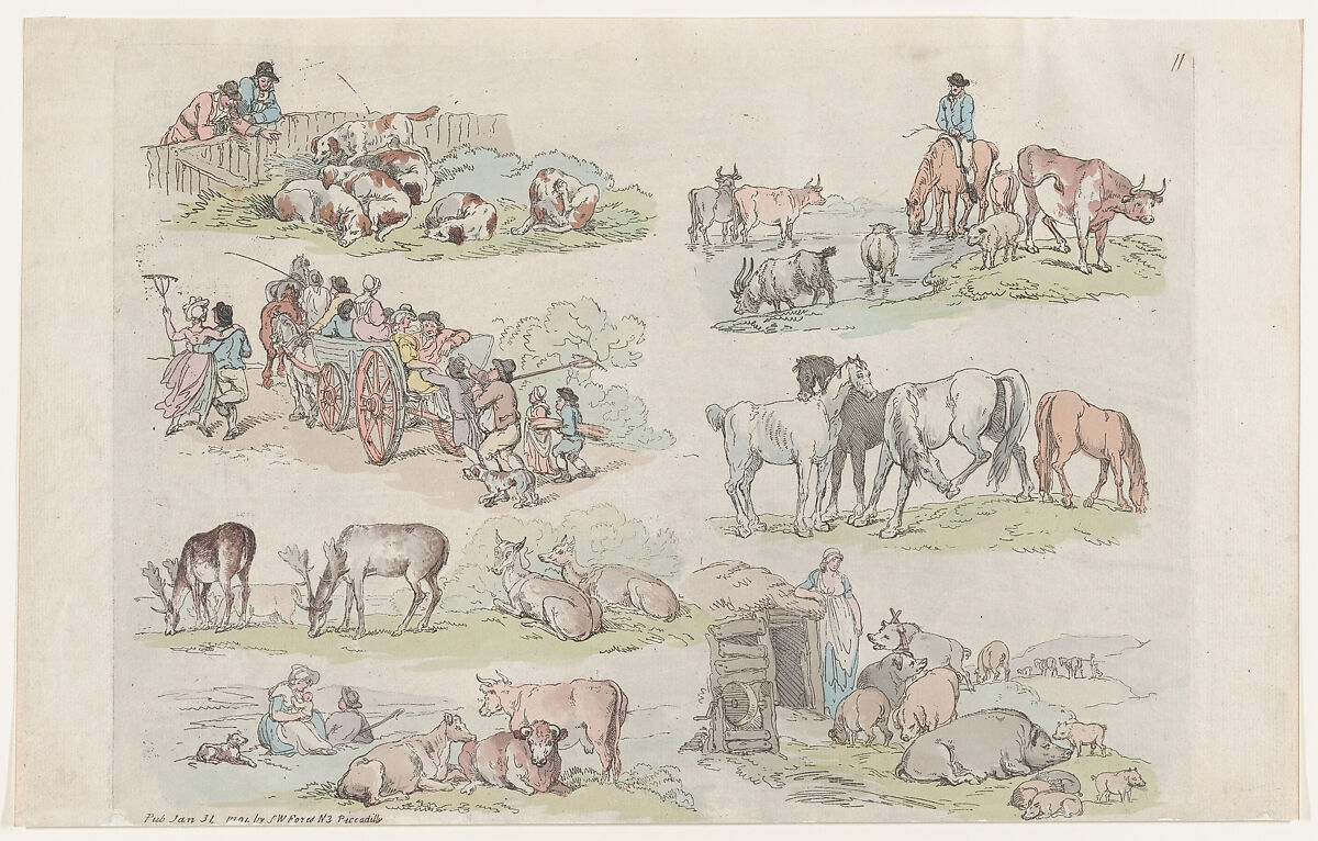 Plate 11, Outlines of Figures, Landscapes and Cattle...for the Use of Learners