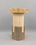 Featuring some of the same natural materials used by ancient Romans to build classical monumental structures, Dorik Stool, together with Ionik Stool (MMA 2018.508) and Tuskan Stool (MMA 2018.509), is reminiscent of antique stone capitals and uses a formal and proportional vocabulary drawing from that of the classical architectural orders. Totemic in form, this stool projects an abstract geometric modernism in place of the elaborate carvings of the columns that inspired it. Rather than supporting a building, this stool is meant to be used within a domestic setting, as seating or a side table. The Chroma Edition of all three stools was designed as a special edition for The Met’s 2017 exhibition Ettore Sottsass: Design Radical, a variation on the previous edition commercially available. The coordinated primary color schemes of each object derive from the palettes used by Ettore Sottsass in his work from the mid to late twentieth-century.