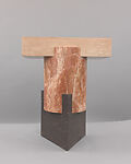 Featuring some of the same natural materials used by ancient Romans to build classical monumental structures, Tuskan Stool, together with Ionik Stool (MMA 2018.508) and Dorik Stool (MMA 2018.507), is reminiscent of antique stone capitals and uses a formal and proportional vocabulary drawing from that of the classical architectural orders. Totemic in form, this stool projects an abstract geometric modernism in place of the elaborate carvings of the columns that inspired it. Rather than supporting a building, this stool is meant to be used within a domestic setting, as seating or a side table. The Chroma Edition of all three stools was designed as a special edition for The Met’s 2017 exhibition Ettore Sottsass: Design Radical, a variation on the previous edition commercially available. The coordinated primary color schemes of each object derive from the palettes used by Ettore Sottsass in his work from the mid to late twentieth-century.