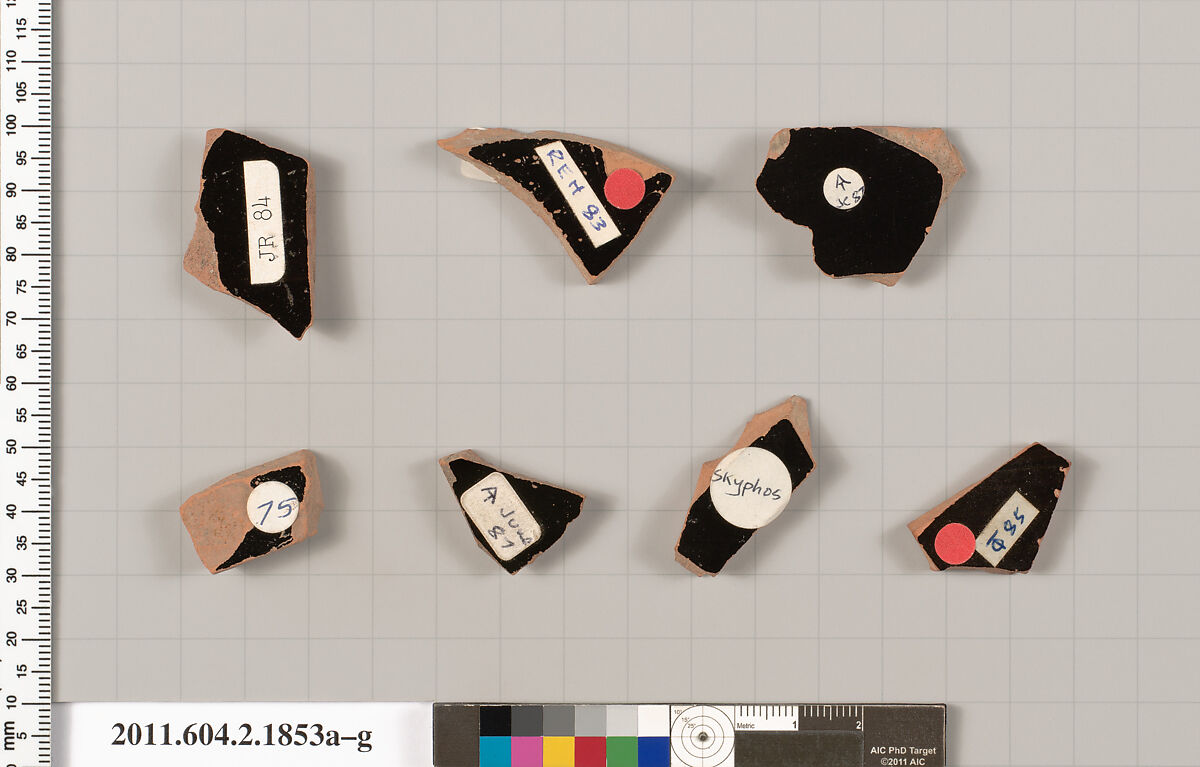 - Title:Terracotta fragments of skyphoi (deep drinking cups)