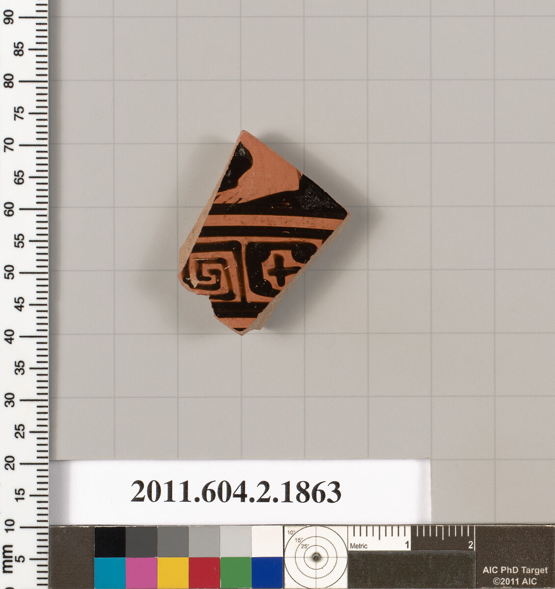 - Title: Terracotta fragment of a skyphos (deep drinking cup)