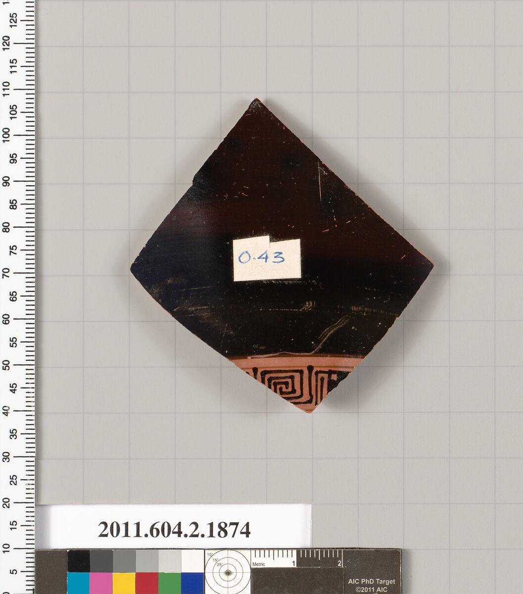 - Title:Terracotta fragment of a skyphos (deep drinking cup)