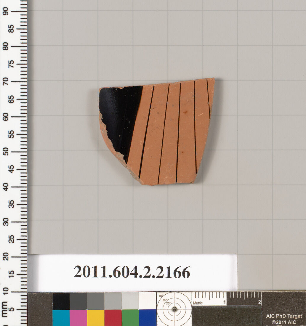 - Title:Terracotta fragment of a pot; unglazed on the inside