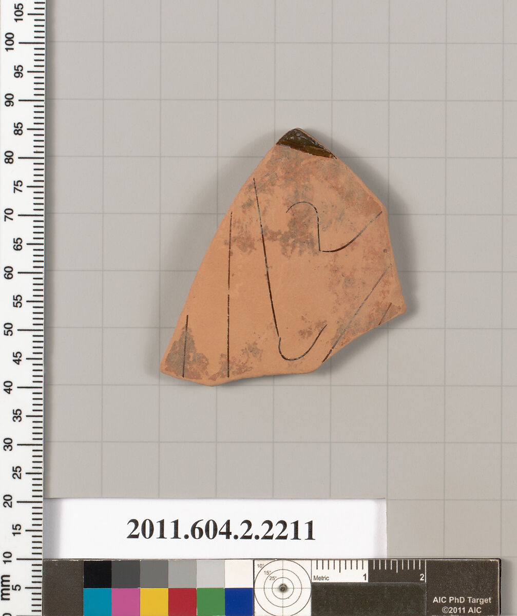 - Title:Terracotta fragment of a pot; unglazed on the inside
