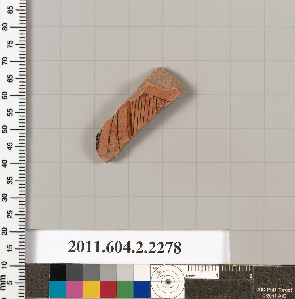- Title:Terracotta fragment of a pot; glazed on the inside