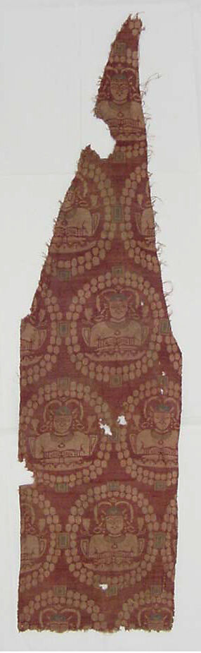 - Title: Woven Textile with Male Bust in Pearl Roundel