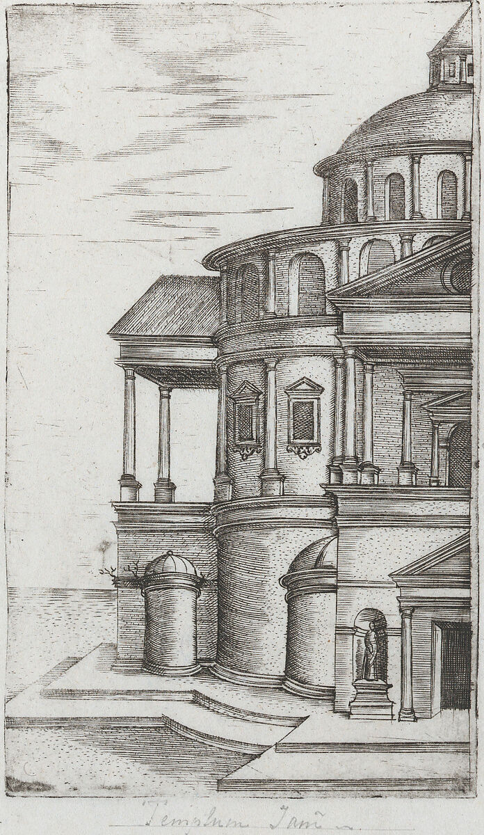 Most copper plates for this series have been engraved on both sides. This print is printed from the same plate as the 'Templum Idor Egito'.