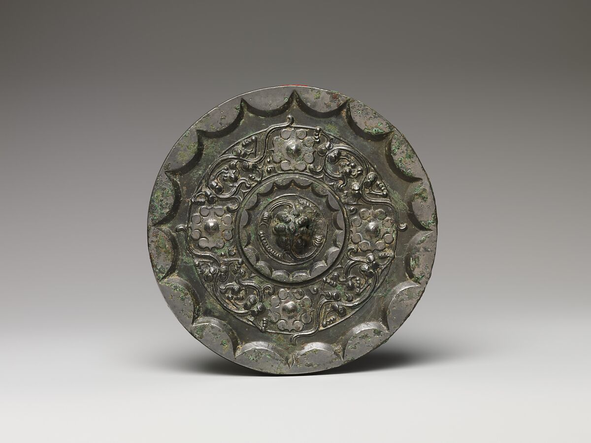 - Title: Mirror with dragons and knob-and-swirl design
