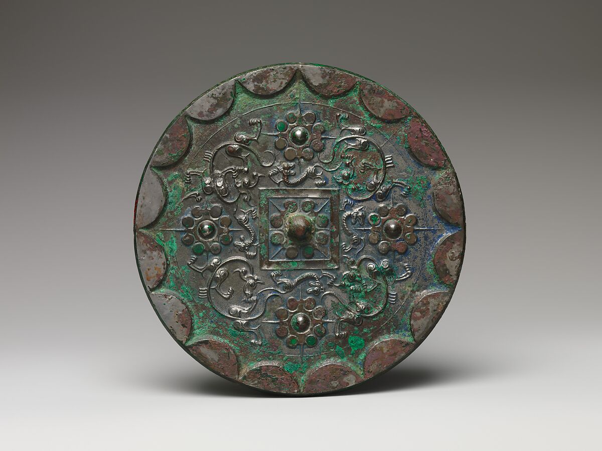 - Title: Mirror with dragons and knob-and-swirl design
