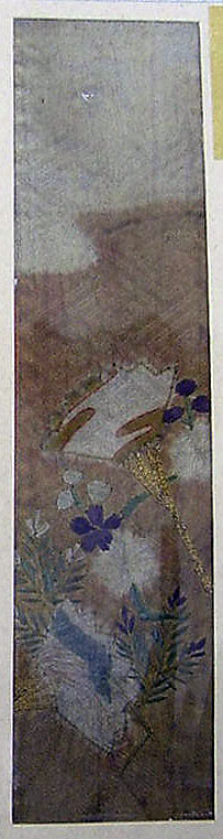 - Title: Piece from a Kosode with Cloud, Fans, Plum Blossoms, and Young Pine