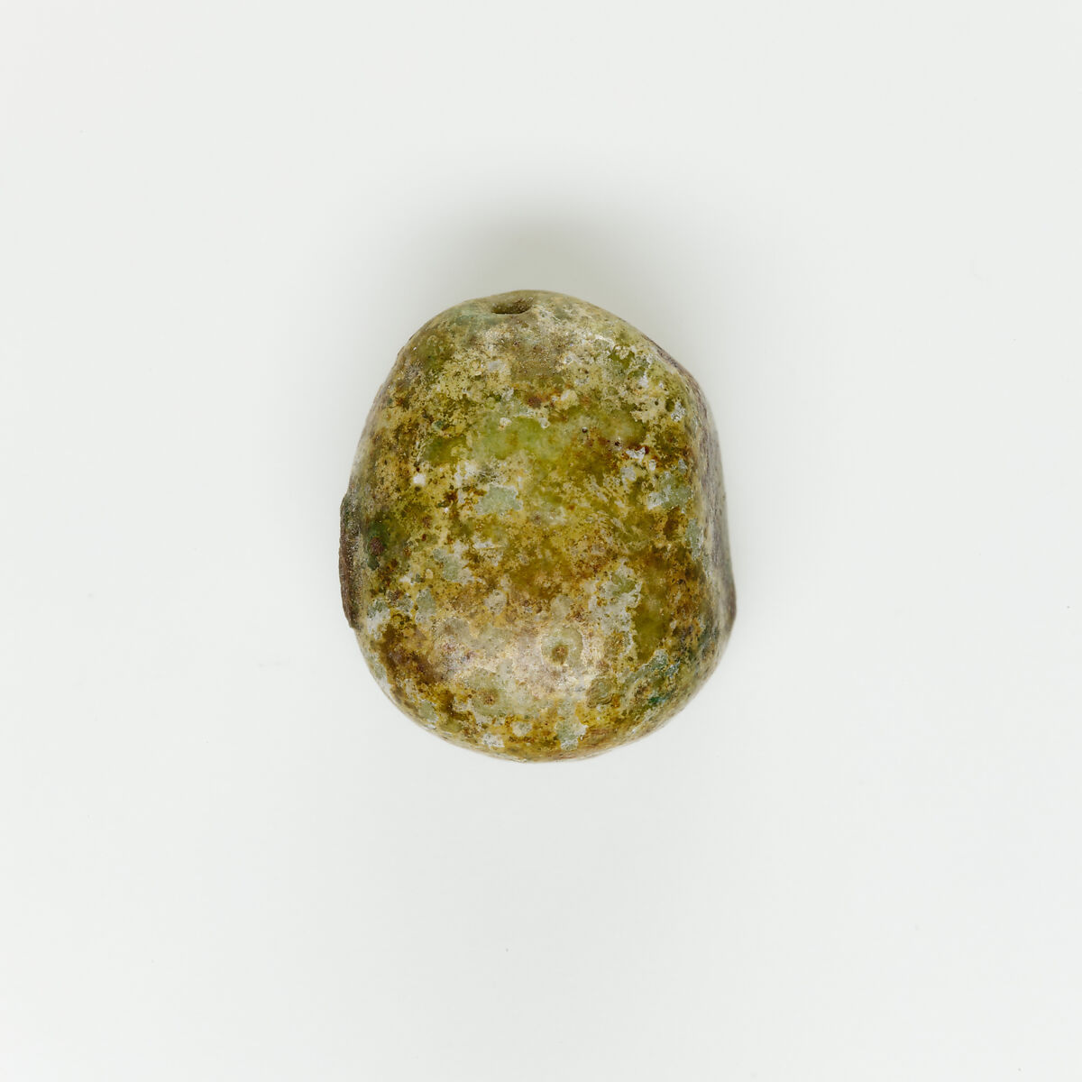 This uninscribed scaraboid bead was found near the remains of a small basket inside the coffin of a man named Amenemhat. The basket had been placed near the head of Amenemhat's mummy and seems to have contained more some 400 mostly uninscribed scarabs and a variety of other beads.
