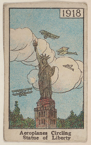 - Title: Aeroplanes Circling Statue of Liberty 1918 trade card (W500)