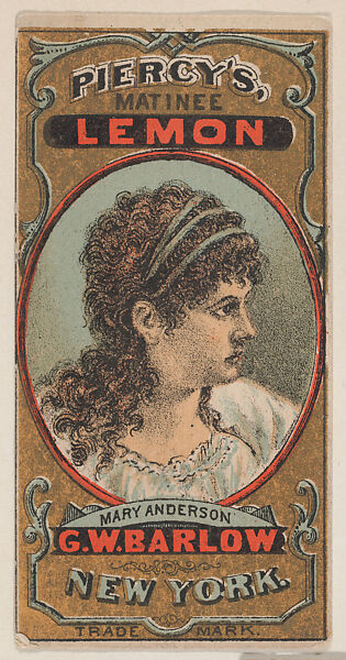 - Title:Mary Anderson, Actress, Percy's Lemon, G.W. Barlow, New York, trade card (W500)