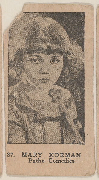 Mary Korman [sic] (Kornman), Pathé Comedies, strip cards (W511). Front: photolithograph with white border. Back is blank. Issued in strips with no other product. This photographic issue includes athletes, celebrities, and actors.