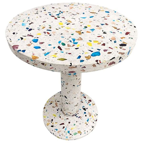 Born in Tokyo in 1934, Kuramata studied at the city’s polytechnic high school and Kuwasawa Design School. He revolutionized design in postwar Japan by reconsidering the relationship between form and function, adhering to Minimalist ideas but embracing Surrealism as well. During the 1970s and 1980s, Kuramata began to use new technologies and industrial materials. He was inspired by Ettore Sottsass and joined his design collective Memphis at its founding in 1981. The Kyoto Table is an example of his innovative use of concrete and glass to create a minimalist form with surface interest. It is a clever play on Sottsass’s own use of terrazzo, but rendered light and almost immaterial by substituting rainbow-colored glass inclusions in place of heavy, dark stones. Kuramata called the material Star Piece, which he claimed represented "the debris of memory." He employed it as a surface material in numerous interior design projects and as the basis for a graphic pattern rendered in other materials, making it somewhat of a signature motif.