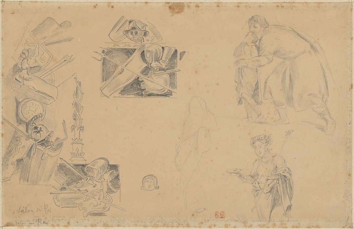 • Title: Studies of Weapons, Shields, and Helmets, for the Salon du Roi, Palais Bourbon