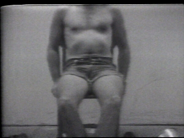 This short is part of a collection representing the entirety of Wegman's work in video to date (excepting commissioned works such as his celebrated pieces for Sesame Street). Wegman took up video while studying painting at the University of Wisconsin. Using the camera like a sketchbook, always with the monitor on so he was watching what he was recording in real time, Wegman improvised situations that both slyly took apart the conventions of painting and sculpture that his generation was leaving behind, while also puncturing the pretensions of Conceptual Art as it was being codified and institutionalized on the East Coast.